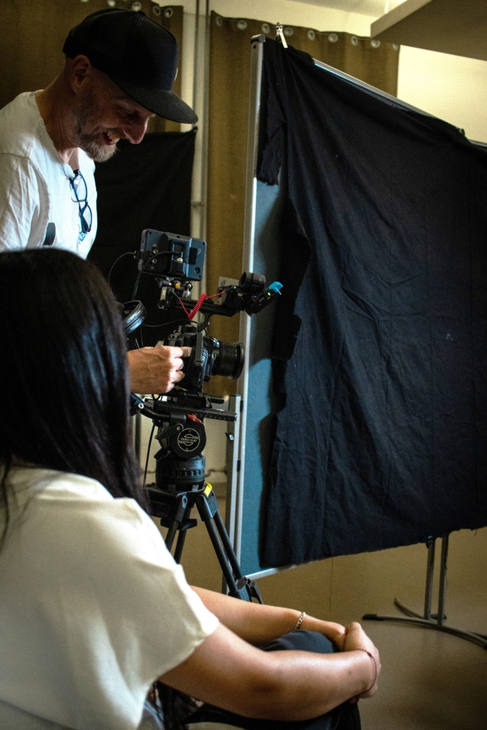 Since I will not see her face, I always have a fallback camera that I can cut to if something happens with the other one. And I was able to look. When I stay here, I won’t see her face. When I was here, I can hide her face behind this. There was a lot of planning of having a lot of camera angles to keep the movie, and the footage, interesting for the viewer because, in my opinion, if you cannot see the person’s face, it is so hard.