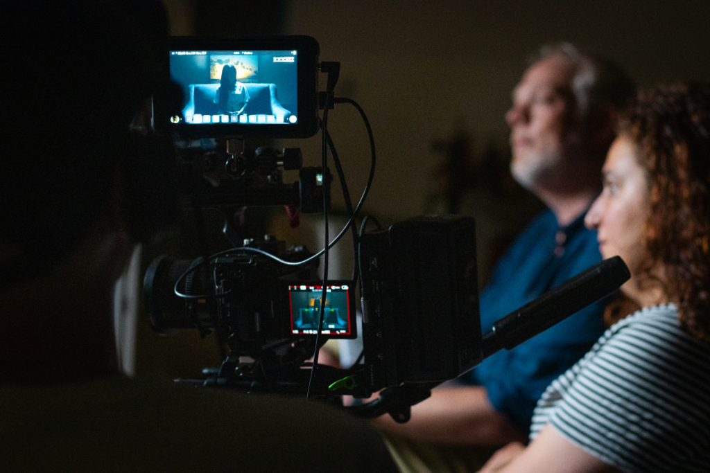 Close-up of Jilan being filmed in interview with Kjell and Leyla.
