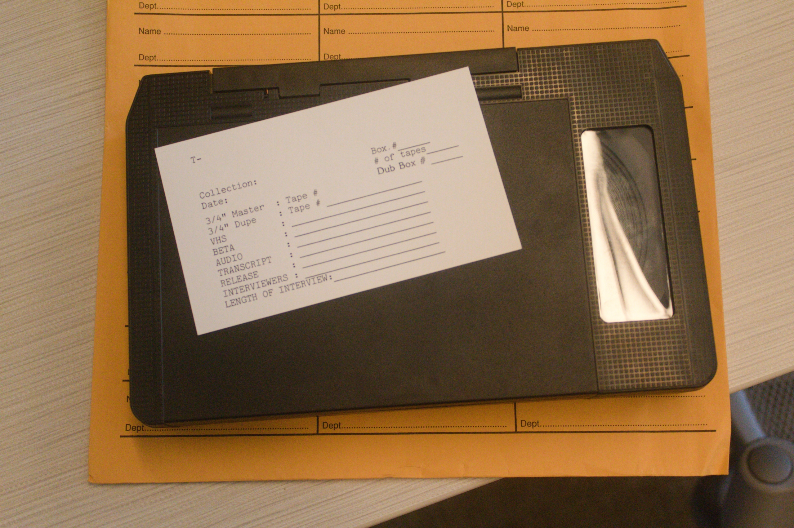 Right: VHS tapes preserved at the Fortunoff Archives.